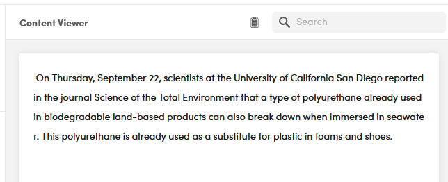 - Select a sentence to highlight it in the text of the Content Viewer panel. Delesect the sentence to remove the highlight.