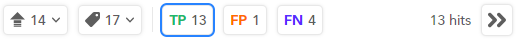 The bar shows counts related to the current experiment (for example, the number of extractions and the metrics) and the number of annotations. Sometimes counts are shown in buttons that act as highlight toggles. The bar can also show annotation controls.