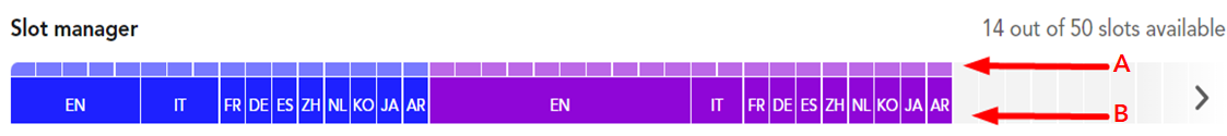 The pool of computing slots is represented in the Slot manager strip at the top of the window and in the pop-up that appears when you change the number of instances of NL Core for a language.
