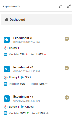 To check the quality trend indicators in the experiment list, check the indicator arrows.