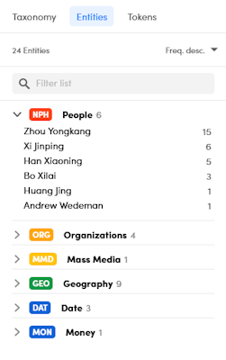 To highlight all the occurrences of all the named entities of a given type, select the entity type.