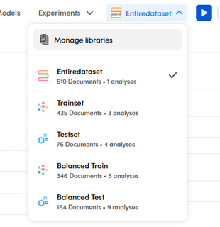 To open the libraries view select Manage libraries on the libraries dropdown menu of the main toolbar of the project dashboard (see the screenshot above).
