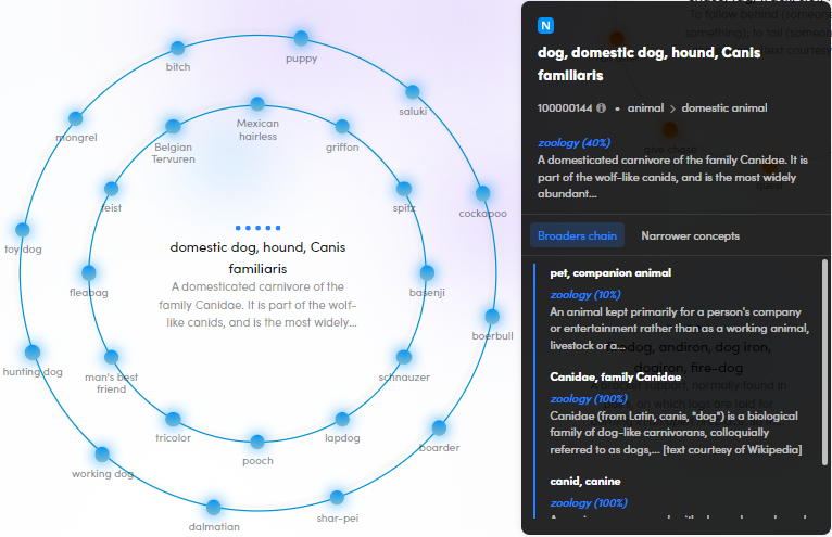 The number of concepts (also called syncons) and the number of concept-defining lemmas of the knowledge graph are indicated above the knowledge graph selection dropdown list.