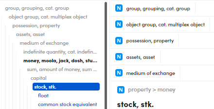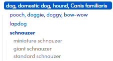 The current concept is boxed, its ascendant are listed above it, while the child—narrower—concepts are listed below.