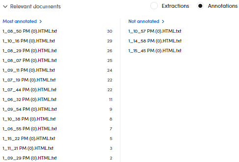 - Select Most annotated, Not annotated, (when the Annotations box is checked) Most extracted, Not extracted to apply filters.