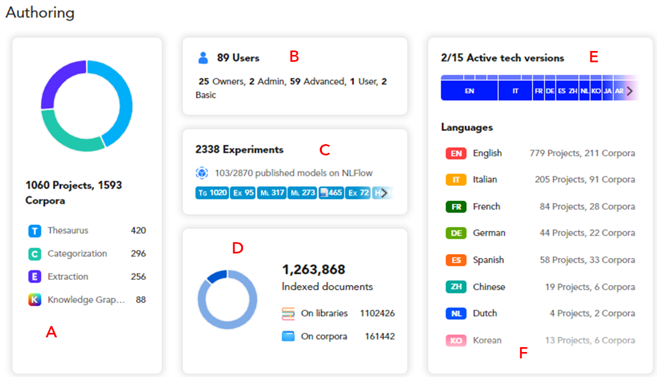 In the Overview tab of the administration dashboard you can find an infographic showing the status of the Platform at a glance.