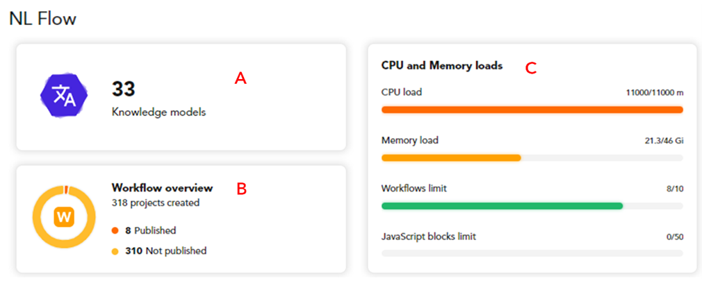 The NL Flow section is about the NL Flow application and shows: