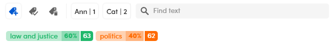 Annotating a document means to manually select a category for a text. The selected category is visually represented by an indigo chip