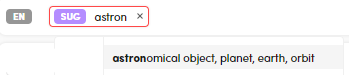 - To find suggestions for a category, enter $SUG and the category name in the search bar