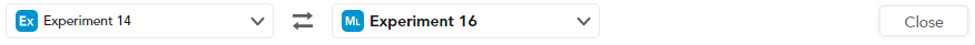 to swap the experiments and change the experiment in focus, the one on the right (only when comparing two experiments). - Select Close to stop the comparison and view the experiments dashboard.