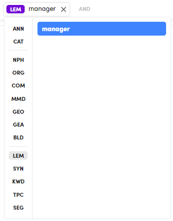 In case of multiple lemmas and boolean operators involved in your search, you can use round brackets to modify the default evaluation order of boolean operators for more precise searches.