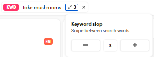 When the value of a keyword type element includes several words, you can adjust the slop, that is the tolerance in terms of distance in words between the words typed. Value 1 means that the words must be one after the other.