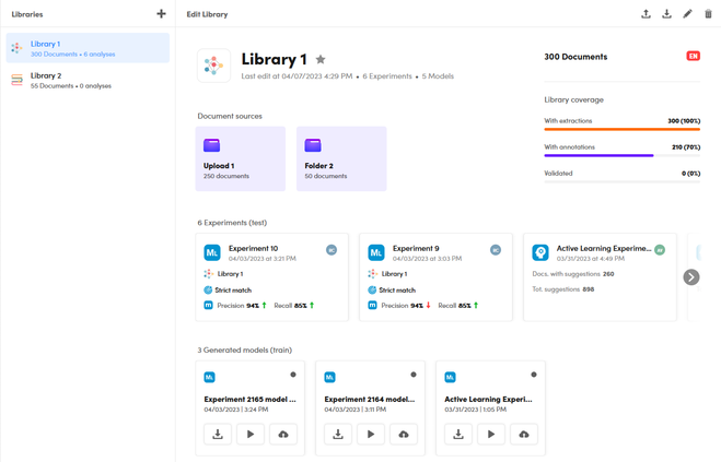 If the library has been used to train models, the list of models is shown in the lower part of the Edit library panel.