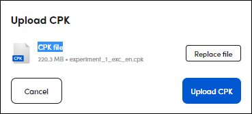 - Select Upload CPK to start the upload process or Replace file if you want to replace the CPK to upload.
