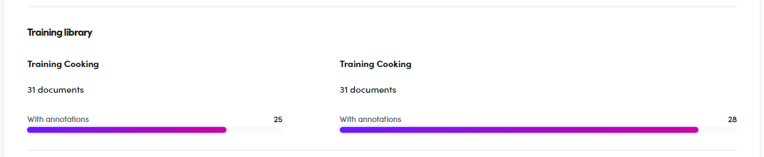 To compare the training library in terms of documents with annotations, check the Training library area.