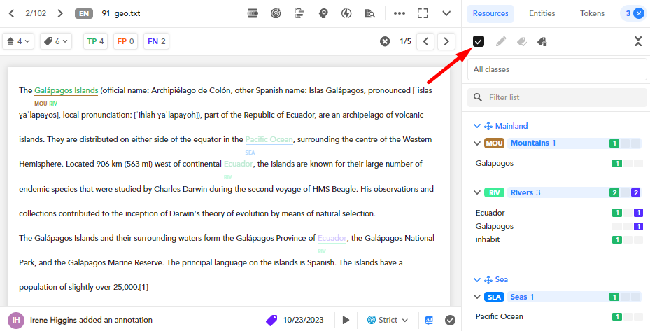Even if you select a single annotation, the Select all is displayed as selected. Click it to select all concepts.