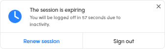 The authoring application automatically logs you out after prolonged inactivity. In that case, before logging you out, the application displays a warning: select Renew session to stay logged in.