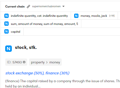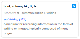 A five dot score (D) which represents the frequency with which the searched lemma is used to express the concept, that is the strength of the relationship between the concept and the lemma.