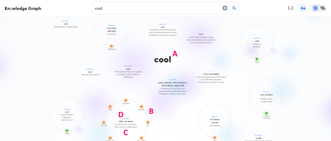 - When a concept has narrower concepts, they are displayed as satellites orbiting the broader concept (B).