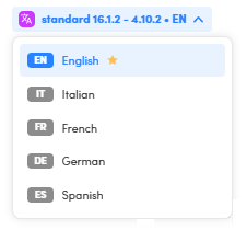 The current knowledge graph is indicated in the dropdown list in the upper left corner. The default knowledge graph corresponds to the tech version of the project and, in case of multi-language thesaurus projects, to the favorite project language.