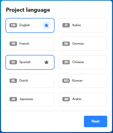In the first step of the wizard you choose the languages for your project.