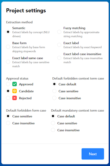 To learn more about these settings see the article on editing the basic extraction settings for the single concept and the one dedicated to concept validation.
