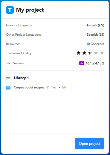 - If there are no projects, select the Thesaurus project card.