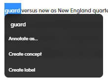 - Select the portion of text to be annotated: a pop-up menu appears.