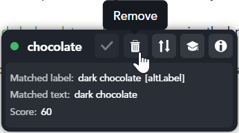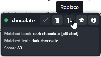 - In the text, select the related chip to be annotated: a pop-up menu appears.