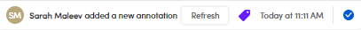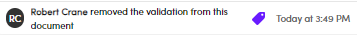 - Each time you annotate, delete an annotation, validate a document or remove the validation, a last activity notification appears at the bottom of the text.