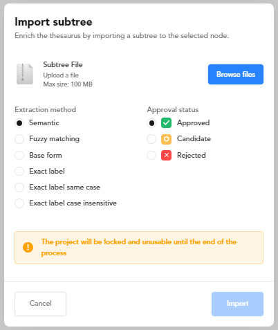 3. Select Browse files to locate and open the .xml file containing the SKOS definition of the subtree.