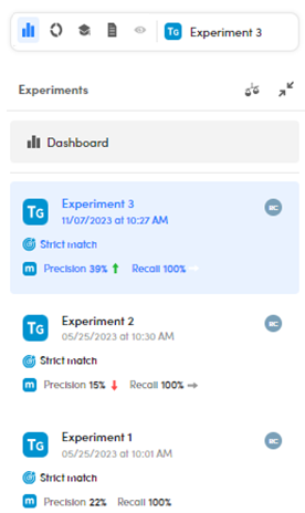 Either while looking at the dashboard or the experiments statistics, you can find the experiments chronological order in the Experiments panel.