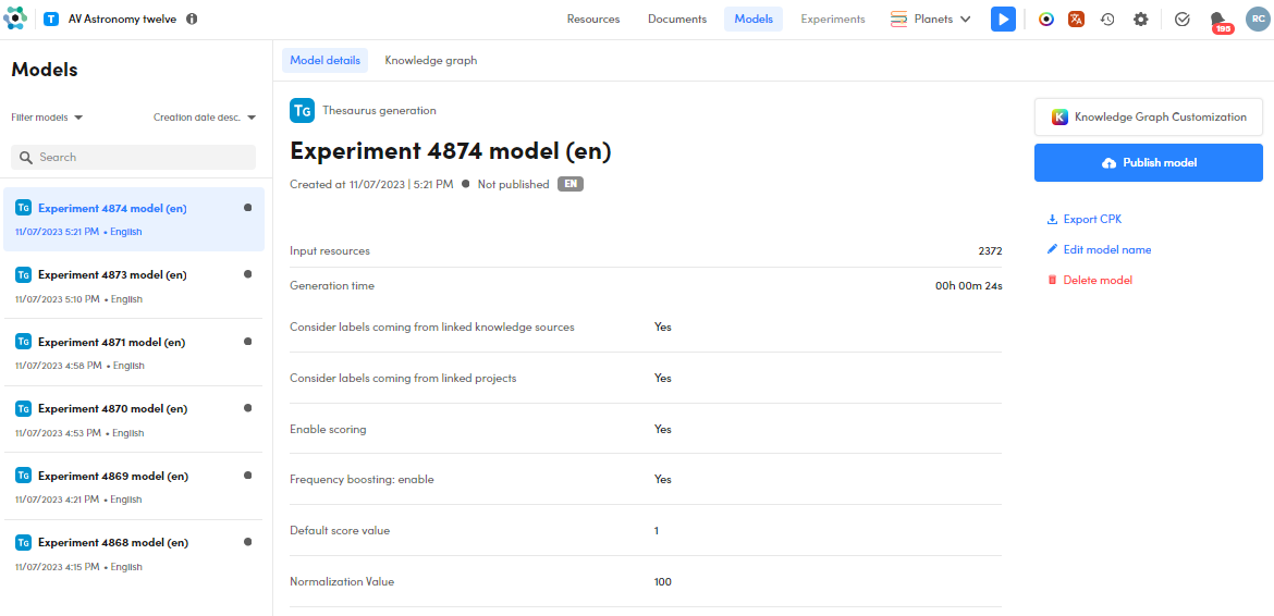 In case of multi-language projects, a single experiment generates a number of models equal to the number of languages.