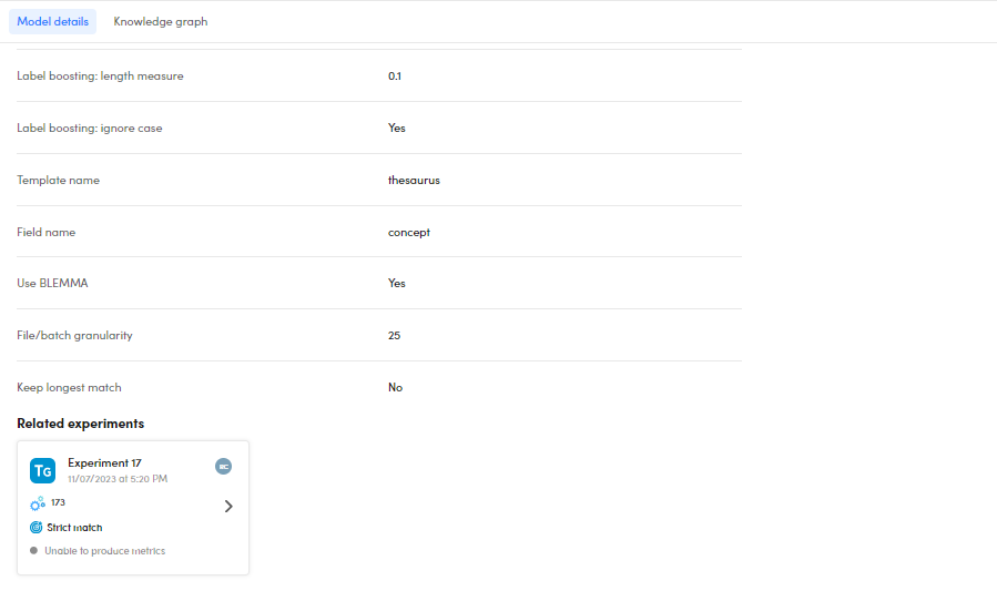 Use the Knowledge graph panel to navigate the knowledge graph of the selected model.