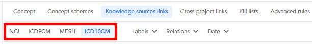 - Knowledge sources links: operations on linked concepts in knowledge sources1.
