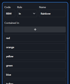 keymust not be included in the list under Not contained in. The list of values is managed like that of the In operator (see above). - Contains: the value of input variable