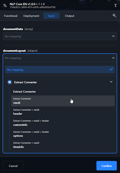 There are two versions of the component available: 1.0.0 and 1.1.0. Version 1.0.0 is present for backward compatibility with old workflows created with previous versions of NL Flow. For new workflows always use the latest version.