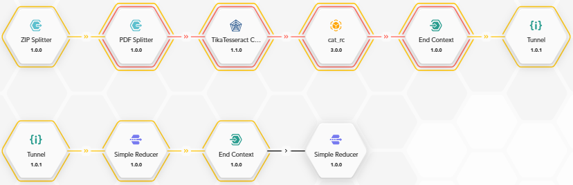For example, the outer context can loop on the PDF files extracted from a ZIP file with ZIP Splitter while the inner context can iterate on the pages of each PDF file with PDF Splitter to perform some per-page analysis.
