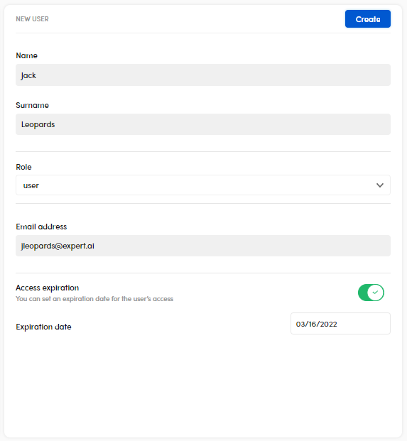 - Optionally set the access expiration by switching on the Access expiration toggle button.